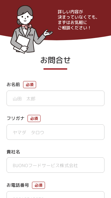 「BUONO!Catering」の特徴である"安さ"というキーワードからイメージを広げ、手に取りやすさ・親しみやすさをポップな表現でデザインに落とし込みました。メインカラーは、料理が美味しそうに見えて食欲が掻き立てられるような赤色に設定しました。また、ポップなイラストを使うことで、一般的にはあまり利用する機会のないケータリングを身近なものに感じてもらう意図があります。